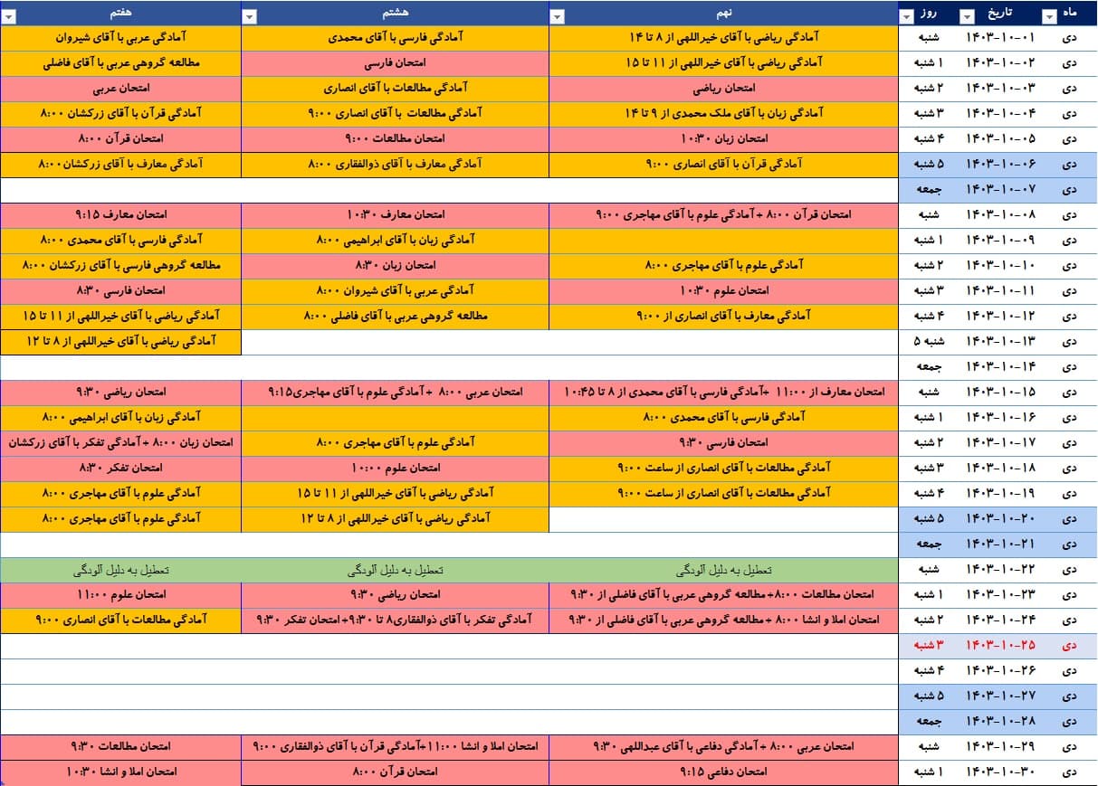 🔹 میتوانید با ملاحظه نمونه برنامه امتحانی زیر