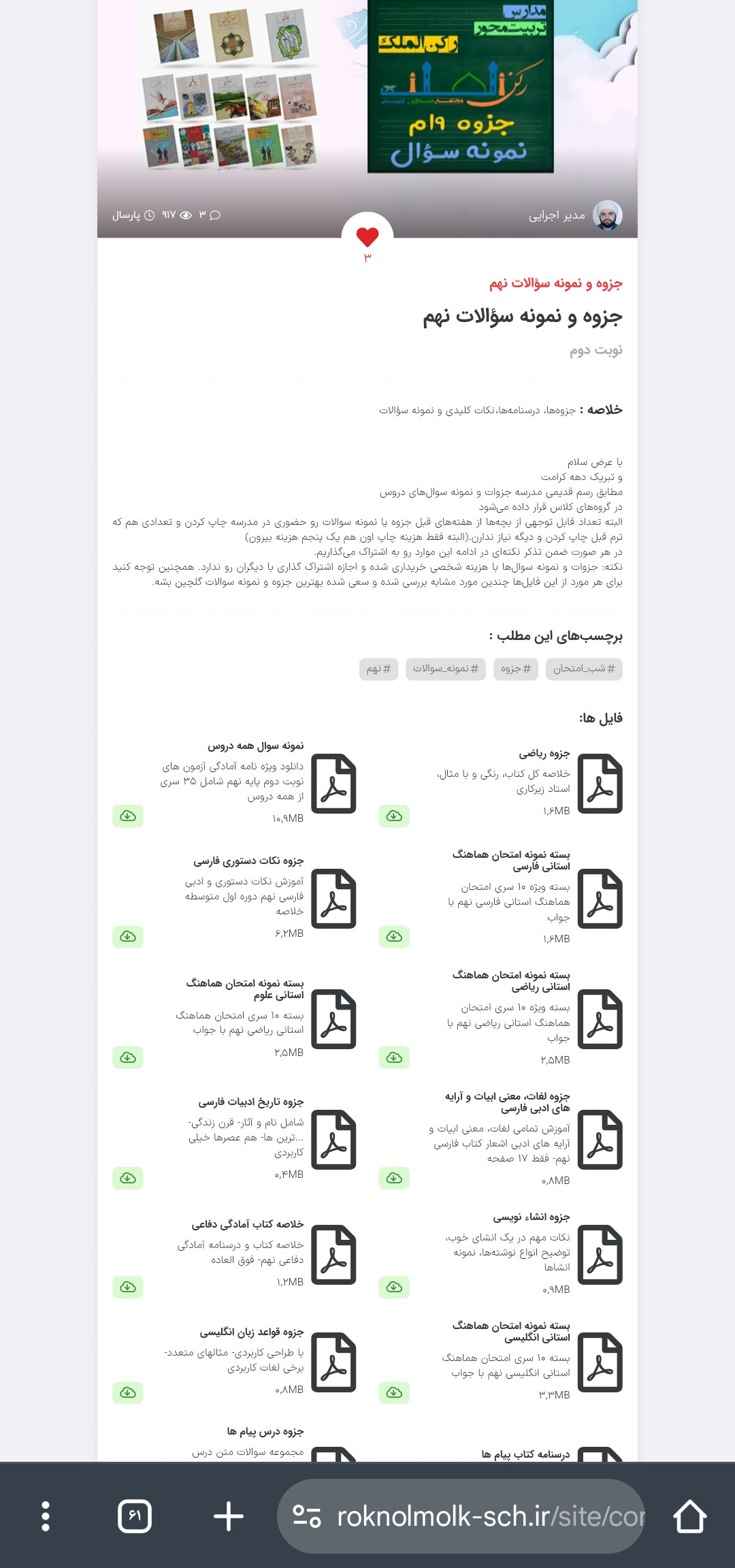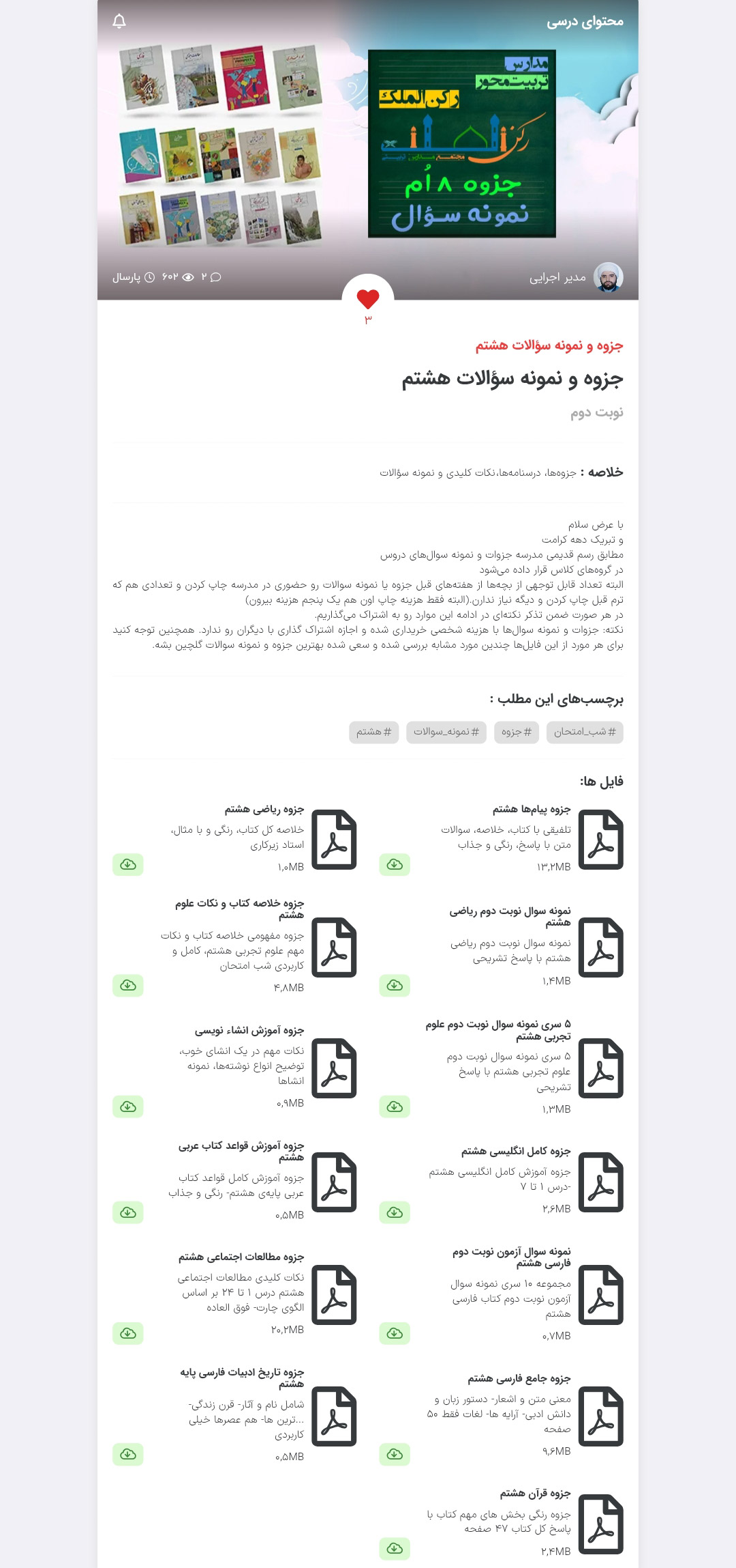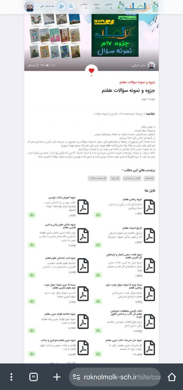 به پیوست جزوات و نمونه سوالات هر پایه قرار داده شده است.